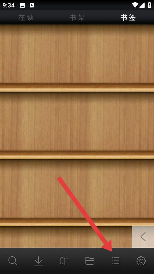 1、打开aa小说阅读器,进入书签的页面,点击底部的列表图标,进入站点选择界面。