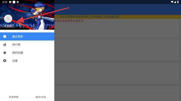 2、在侧边栏中,点击未登录的头像区域,进入账号登录界面。