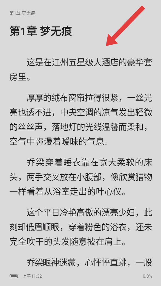 1、打开百度阅读的书籍阅读的页面,可以选择点击小说屏幕任意位置,来进行唤起顶部和底部的操作工具栏。