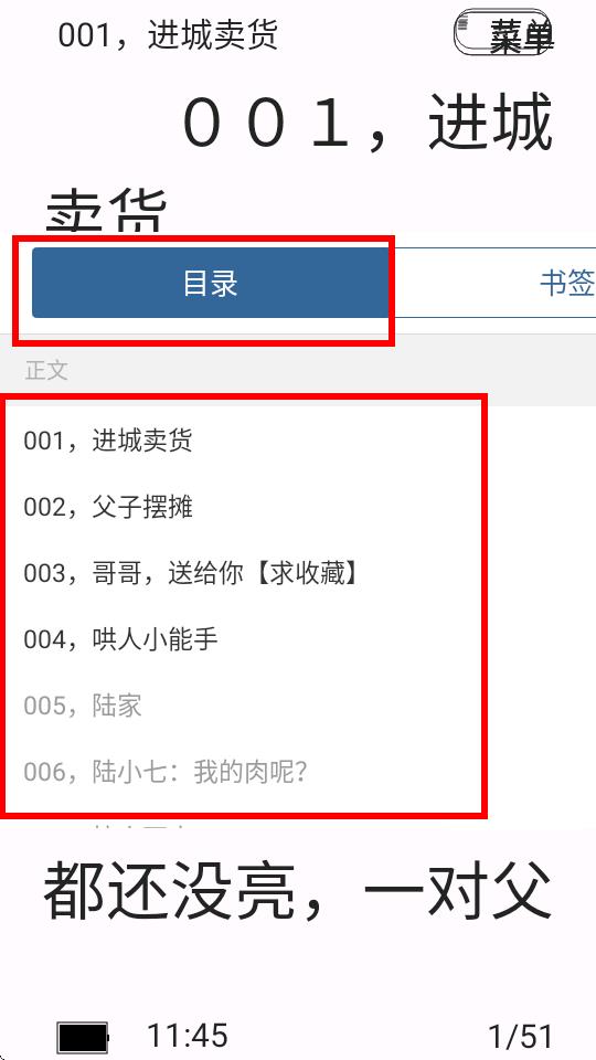 3、页面弹出后,点击目录选项,即可查看该小说包含的章节列表,快速跳转阅读不同章节。