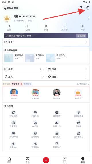 1、启动虎扑APP,进入到首页中,点击导航栏中我的图标。