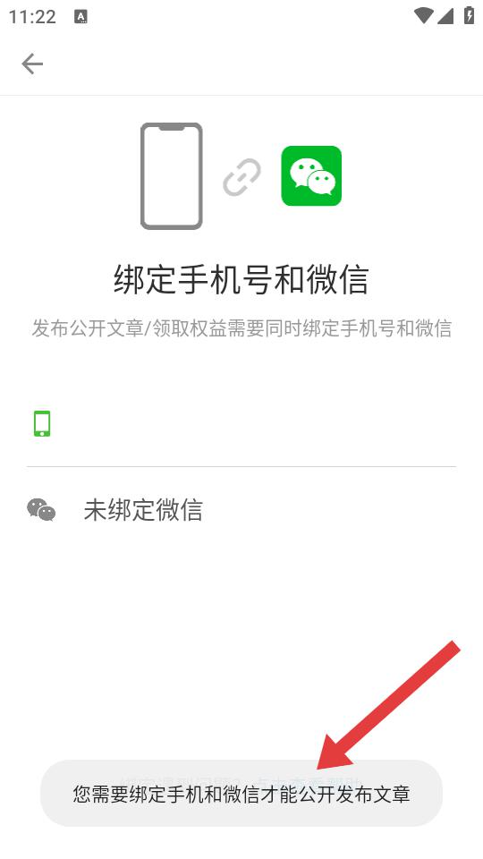 4、若界面提示您需要绑定手机和微信才能公开发布文章,绑定后即可成功发表文章。