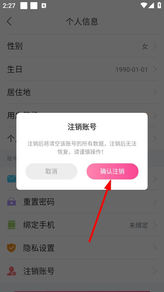 4、在弹出的确认注销提示框中,仔细阅读注销说明,确认要注销账号后,点击确认注销按钮,即可完成账号注销操作。