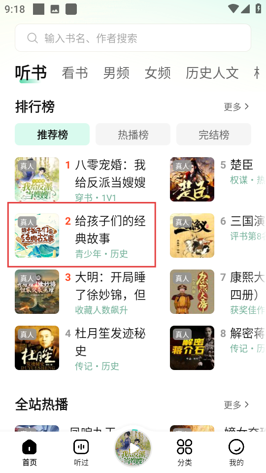1、在排行榜推荐榜中,点击给孩子们的经典故事,进入该书详情页。