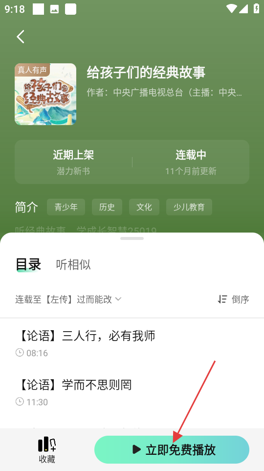 2、在给孩子们的经典故事详情页,点击立即免费播放,开始播放内容。