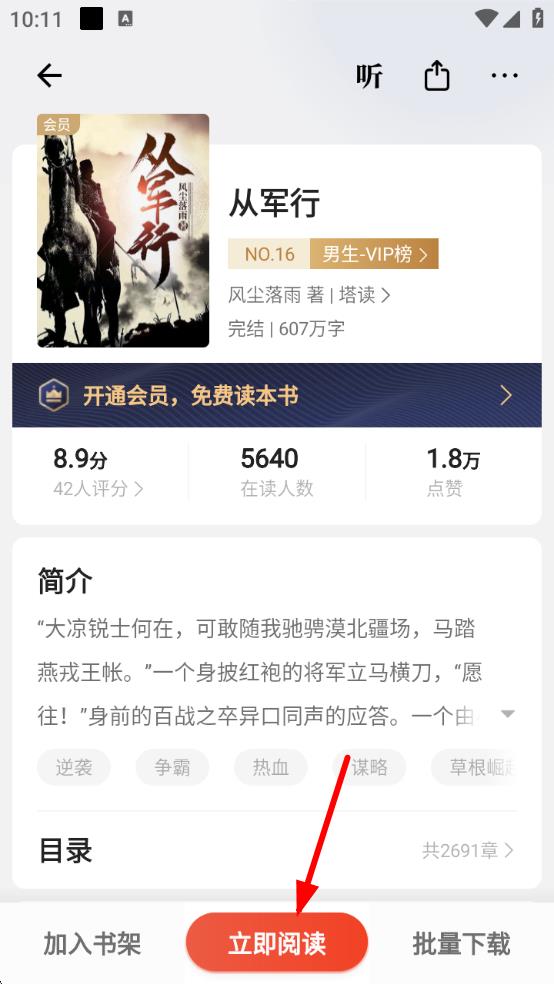 2、在搜索结果中找到目标小说,查看小说评分、简介等信息,确认后点击立即阅读按钮。