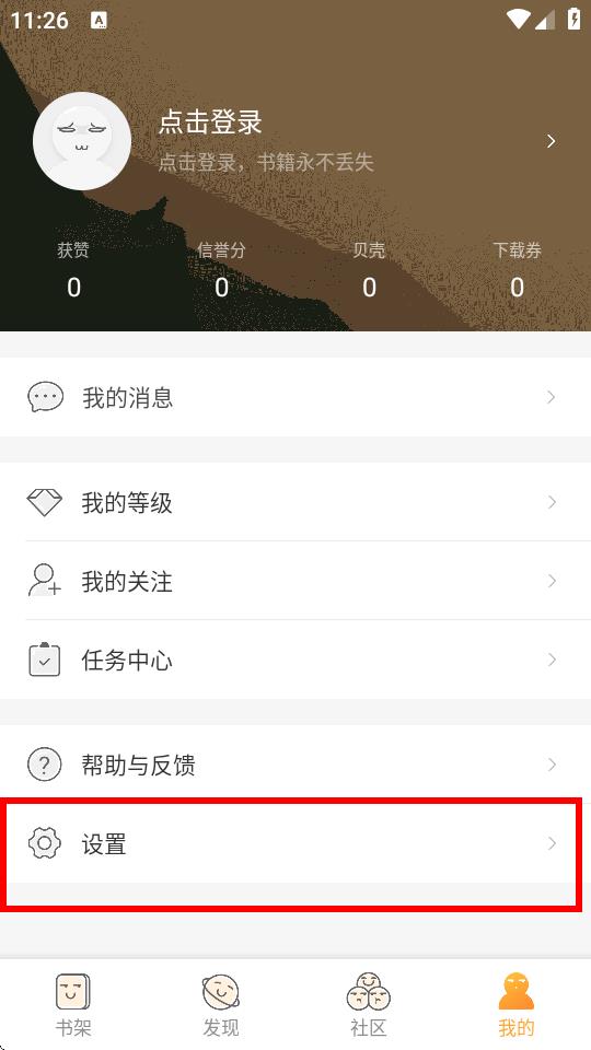 2、在我的页面中,找到并点击设置选项进入设置界面。