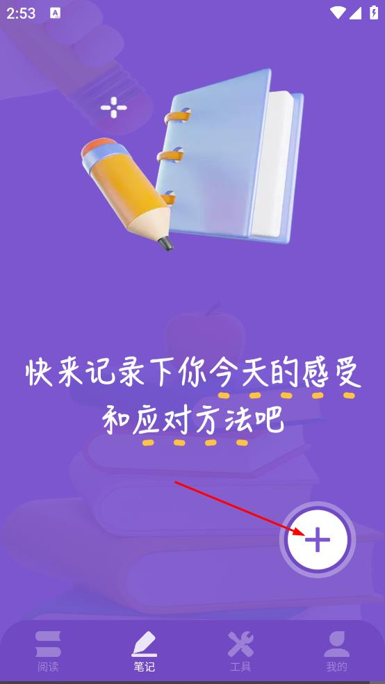 2、在笔记页面,点击右侧+号,进入笔记编辑页面。