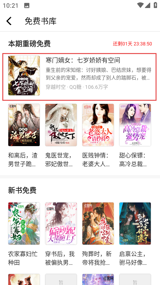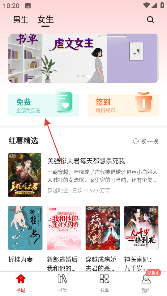 2、在免费书库页面,选择喜欢的书籍,点击进入。