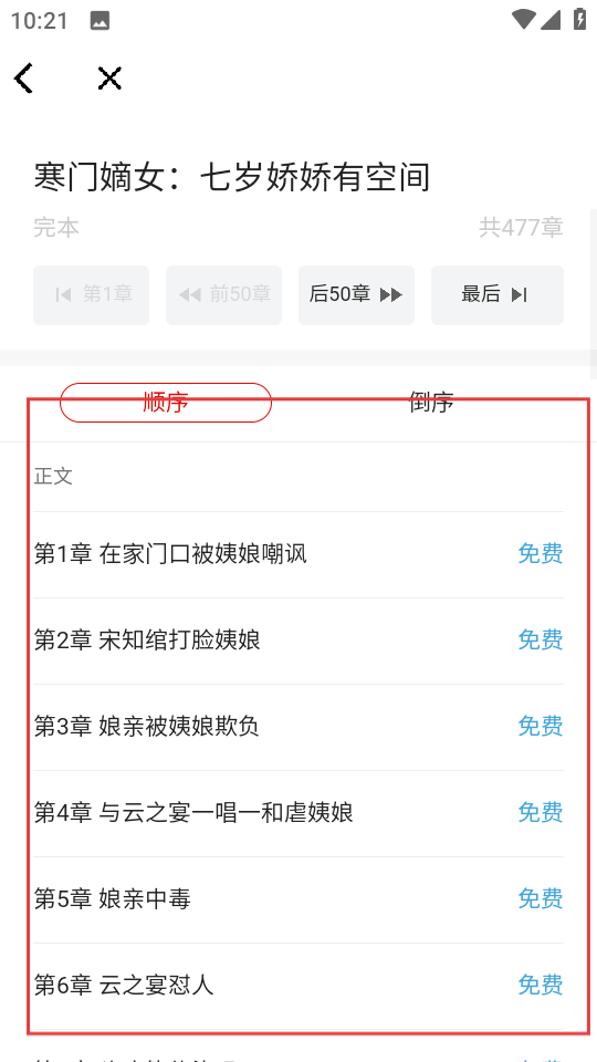 4、在章节列表中,可查看章节内容,选择想要看的章节,即可观看。