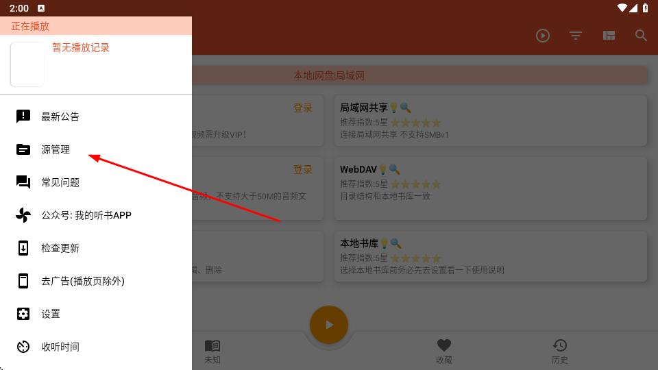 1.复制下方订阅源网址,打开我的听书APP,点击左上角菜单按钮。