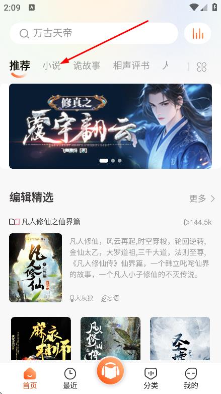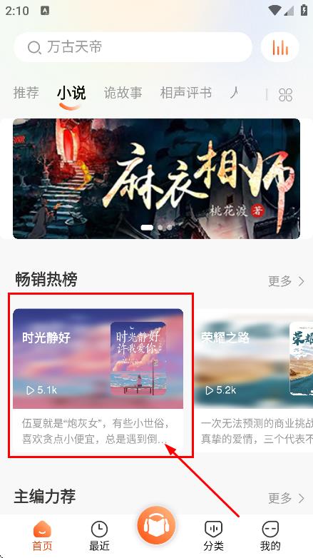 1、搜索查找内容:打开软件后点击顶部搜索栏,输入书名、作者或关键词,即可快速找到对应的有声小说,点击即可开始播放,轻松获取心仪内容。