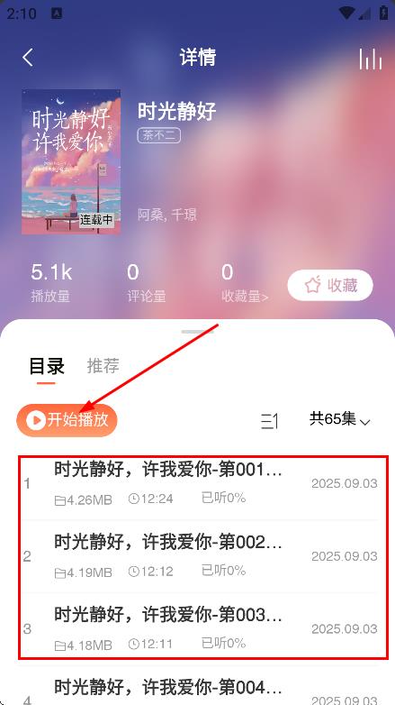 3、在小说详情页面,点击开始播放,进入播放页面。