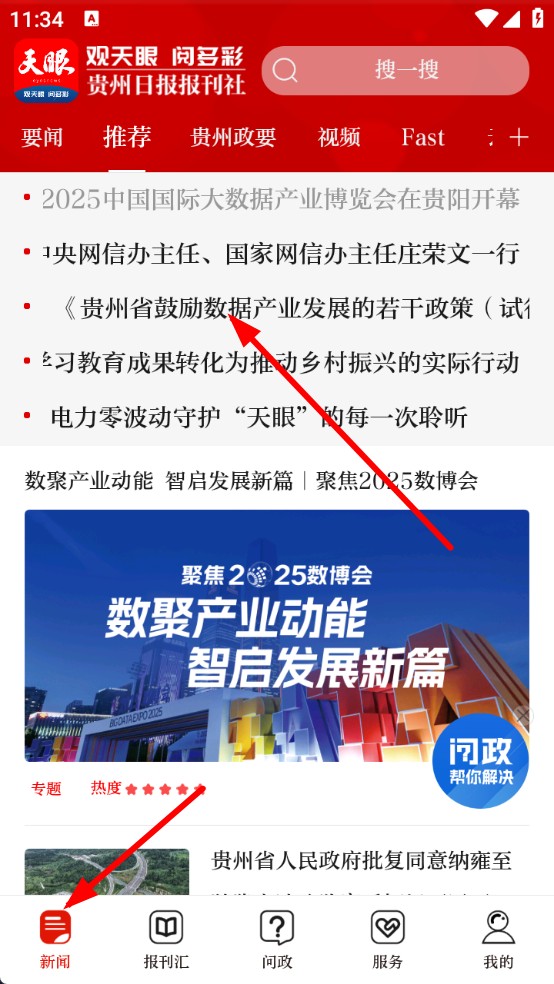 1、打开天眼新闻APP,在新闻页面,选择你想收听的新闻文章,并点击进入。
