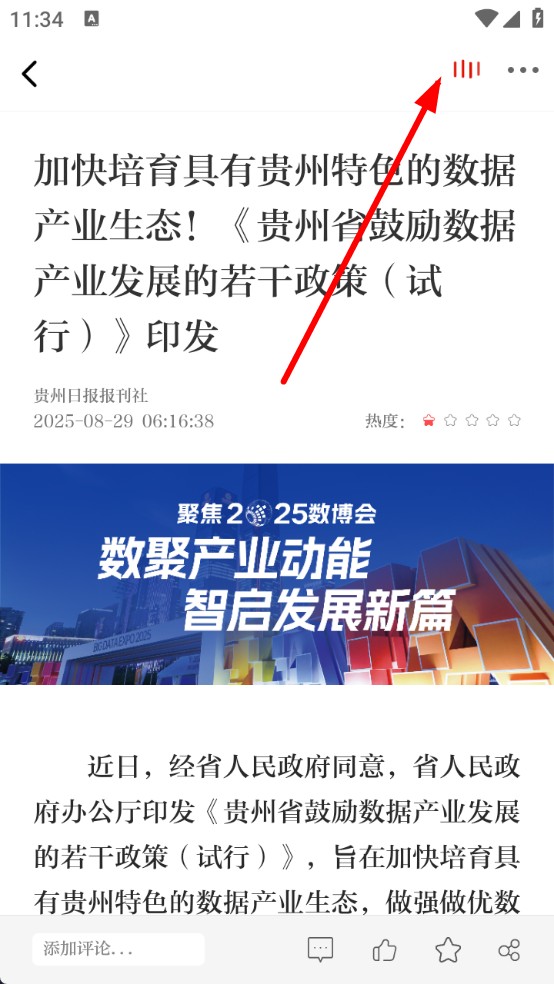 2、进入新闻文章详情页后,点击页面右上角的耳机形状的听新闻图标。