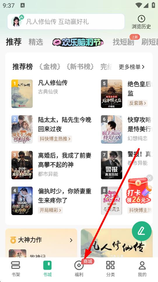 1、打开书旗小说APP,点击底部导航栏中的福利,进入福利中心界面,这里有多种赚取金币的活动和入口。