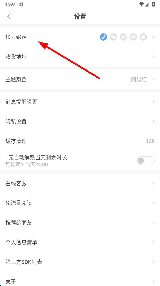 3、在设置界面中,找到并点击帐号绑定选项,进入帐号和绑定设置页面。