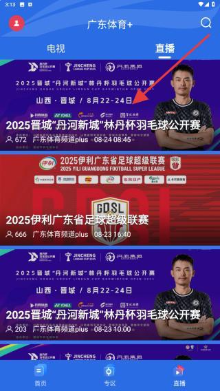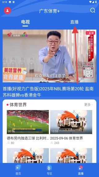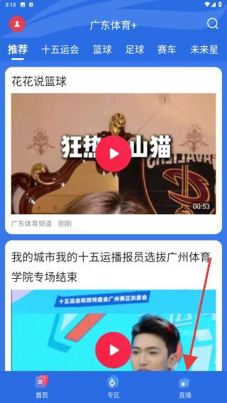 1、打开广东体育APP进入到首页内,点击右下角直播的功能按钮。