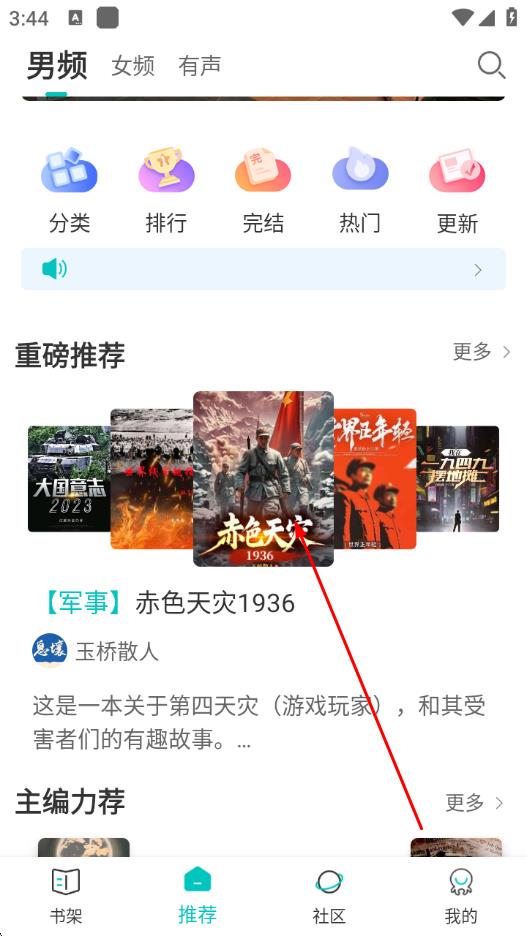 1、打开有毒小说App,在推荐页面找到想要听的小说,点击进入小说详情页。