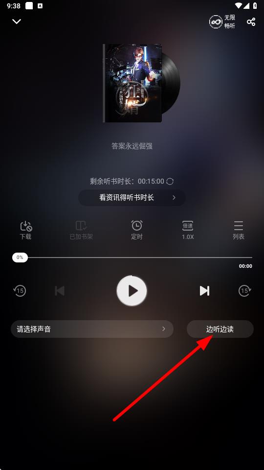 2、进入听书播放界面后,点击边听边读按钮,即可实现边听边读。