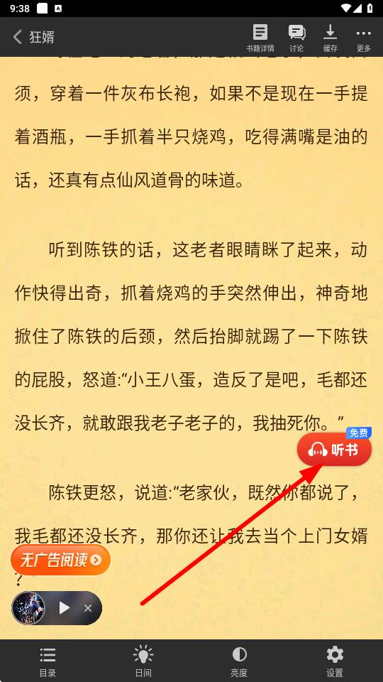 1、在书籍阅读页面,点击听书按钮开启听书功能。
