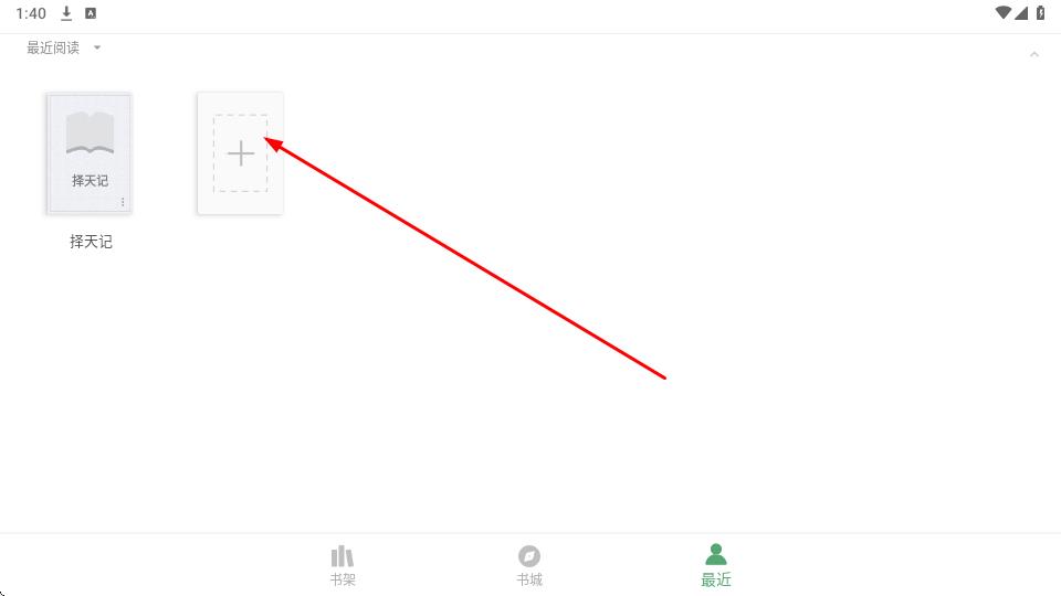 1、进入APP底部最近页面,点最近阅读区带加号的空白书籍框,跳转至文件夹浏览界面。