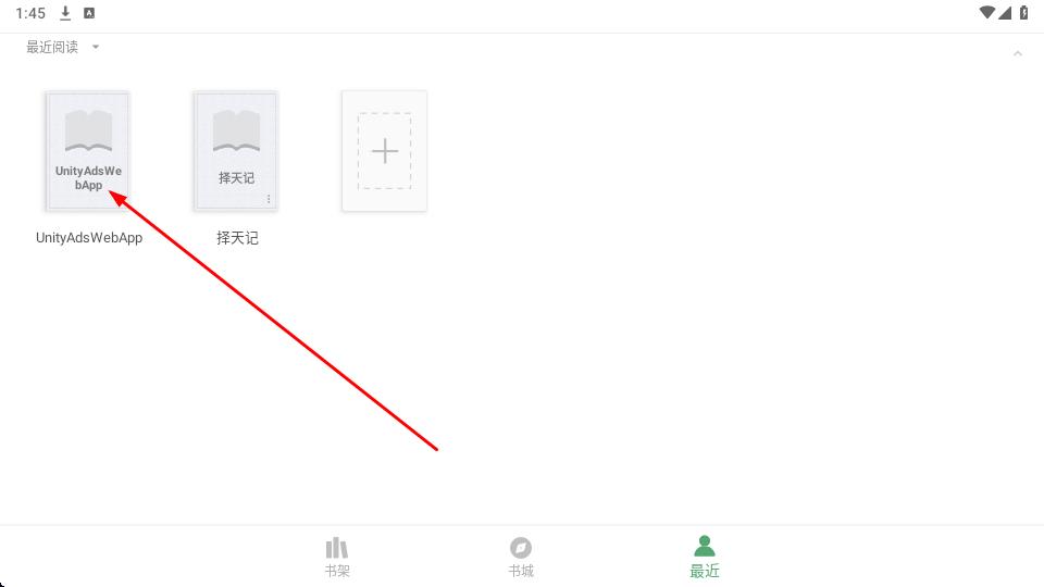 3、返回最近页面,最近阅读区新增UnityAdsWebApp书籍卡片,完成本地书籍添加。