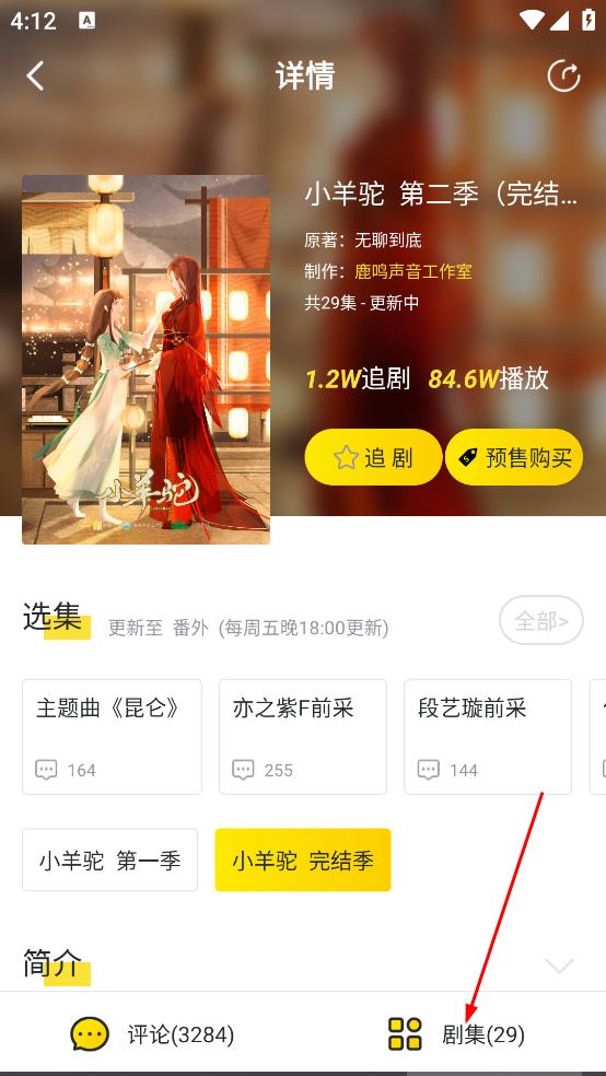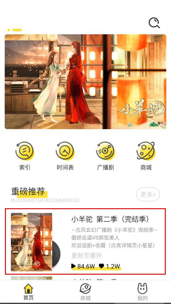 1、在首页重磅推荐中,点击小羊驼第二季,进入详情页。