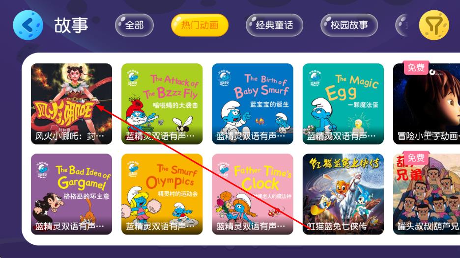 3、在“热门动画”列表中,浏览并选择想要听的动画片,点击风火小哪吒:封神篇。