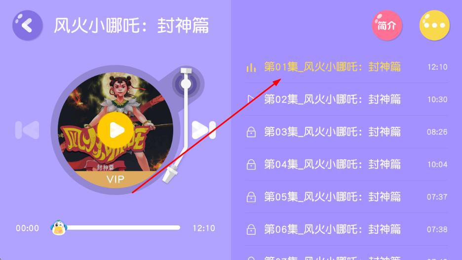 4、进入动画片详情页面后,选择想要听的集数,点击即可开始播放。