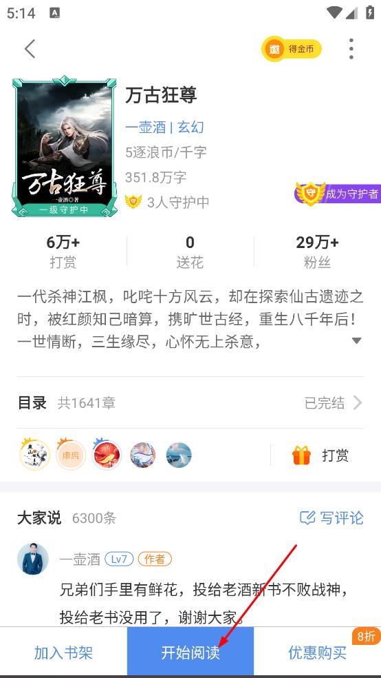 3、随后在书籍详情页,点击开始阅读,进入阅读页面。