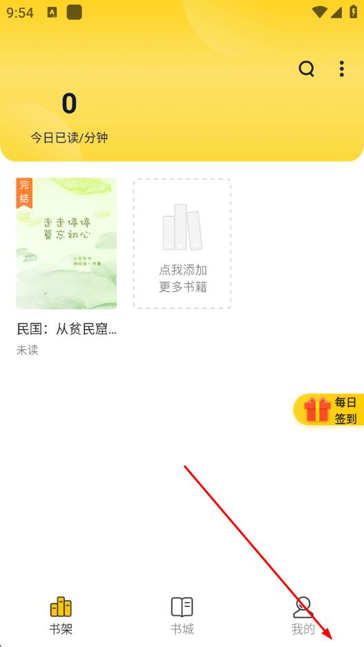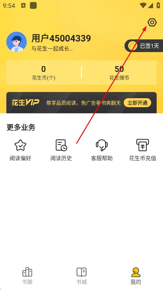 1、打开花生小说App,点击底部导航栏最右侧的我的选项。