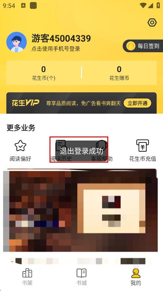 4、完成操作后,页面会显示退出登录成功,即成功退出花生小说的登录状态。