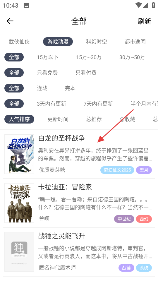 3、在作品列表中,选择喜欢的作品,比如白龙的圣杯战争点击进入。