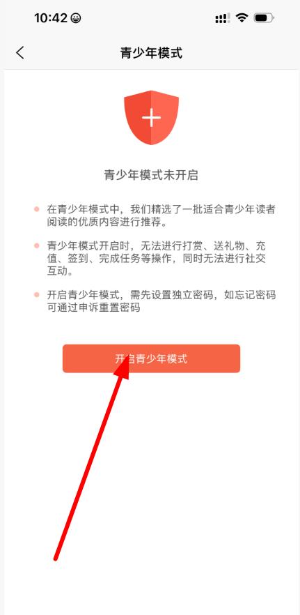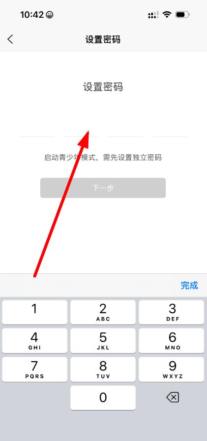 3、在青少年模式设置界面,点击开启青少年模式按钮,接着在弹出的设置密码界面中,设置独立密码,按照提示完成操作后,即可成功开启青少年模式。