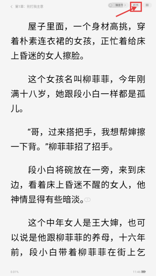 3、在小说阅读页面,可点击右上角听书按钮,进行听小说内容。