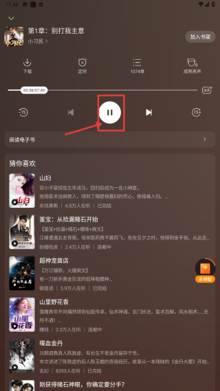 4、在听书页面当中,点击按钮开始听书的内容部分。