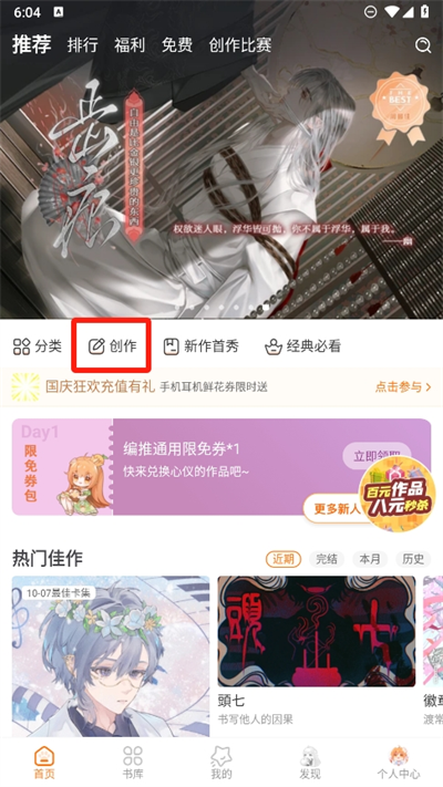 1、进入软件页面后可以我们可以看到在这里拥有创作一栏功能,进入创作了解创作相关内容;