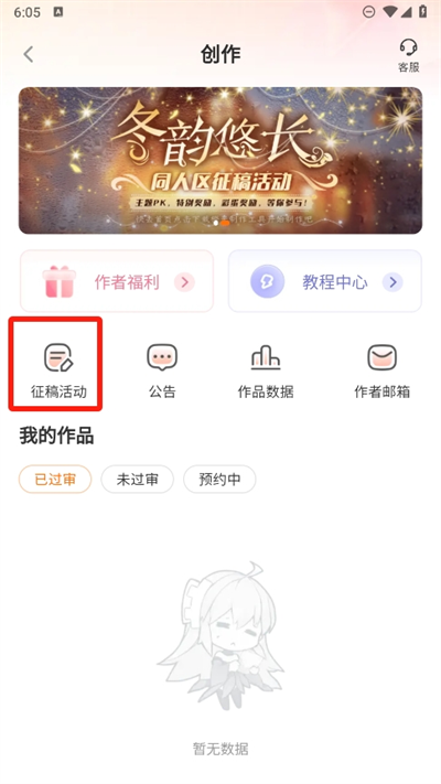 4、进入征稿活动这里还可以看到如今热门的创作活动信息,可以根据活动来制作内容;