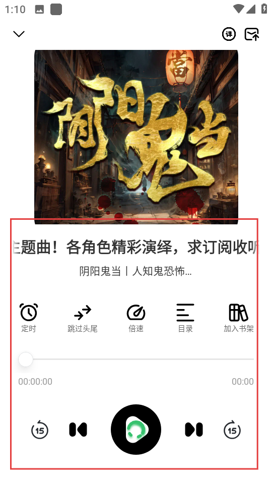 4、在播放页面,可使用定时等功能,享用听书功能。