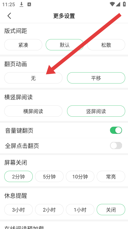 3、在更多设置里,找到翻页动画选项,选择对应上下滑动的模式如部分场景下设置翻页动画为无或特定选项实现。