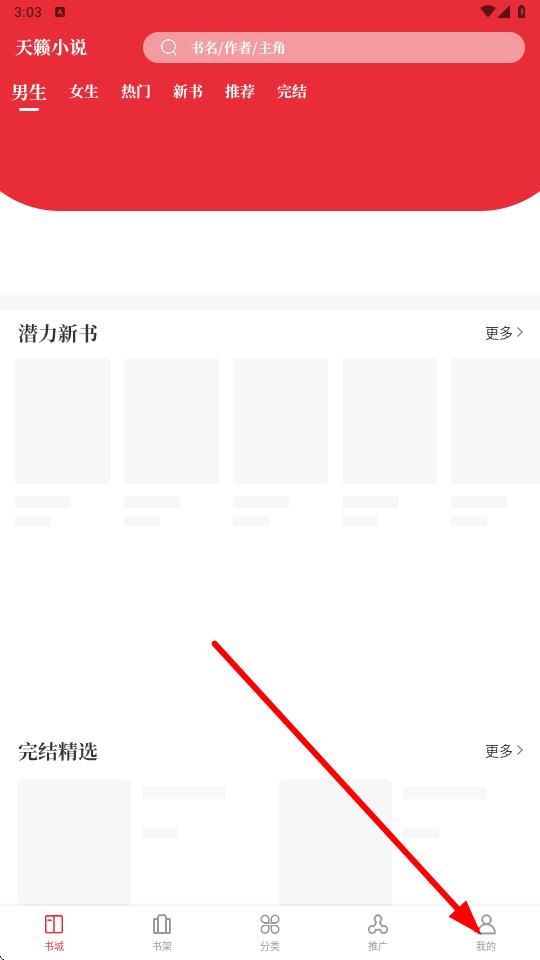 1、打开天籁小说app,点击底部导航栏我的。