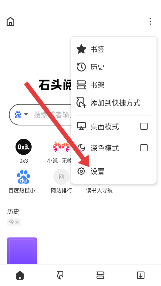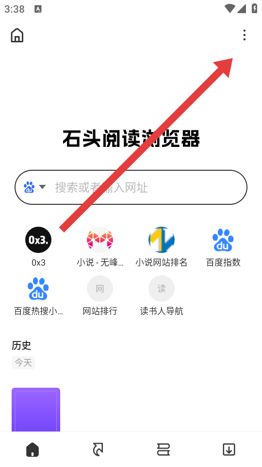 1、打开石头阅读浏览器后,我们这边需要点击右上角三点菜单。
