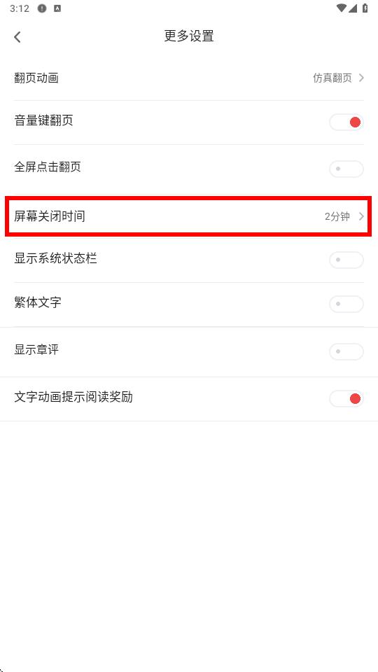 3、在更多设置页面,找到屏幕关闭时间选项,点击进入后即可选择或自定义屏幕关闭时间。