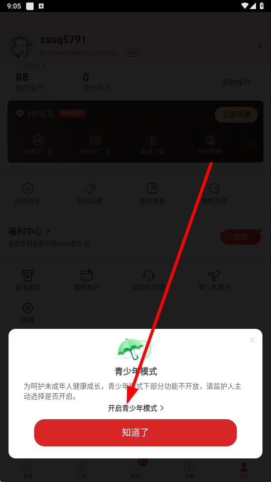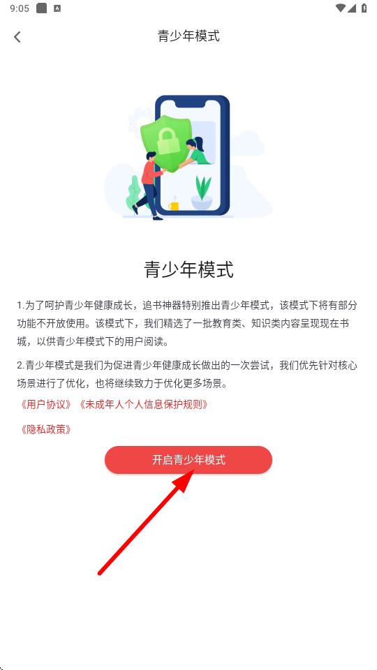 3、在青少年模式介绍页面点击开启青少年模式按钮即可。