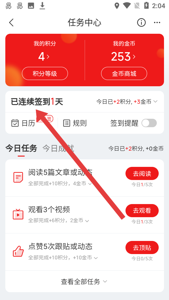 3、系统会自动完成签到,如图显示已连续签到,即代表签到成功。