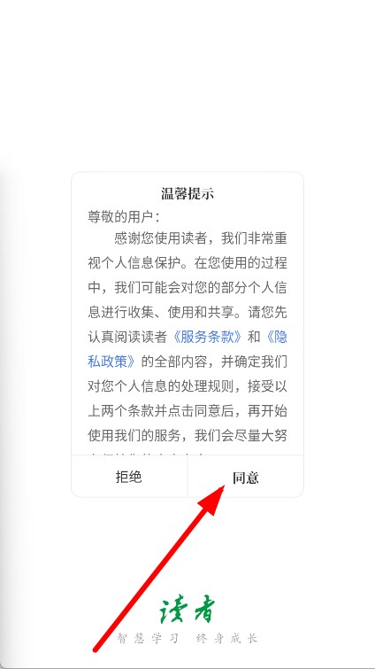 1、打开APP,在弹出的温馨提示框中,点击同意按钮,进入APP主界面。