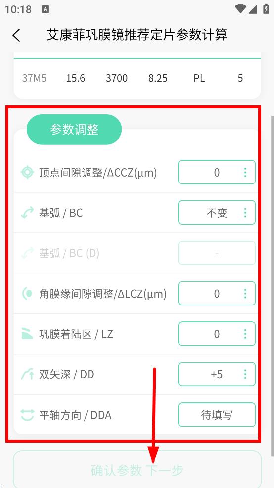 4、在参数调整页面,调整各项参数后,点击确认参数下一步。