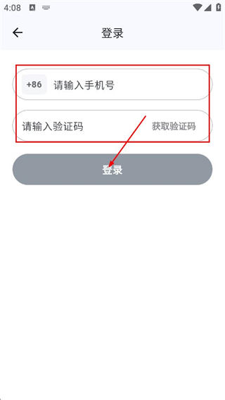 4、填写手机号,点击获取验证码并填写收到的验证码,点击登录,完成账号登录。
