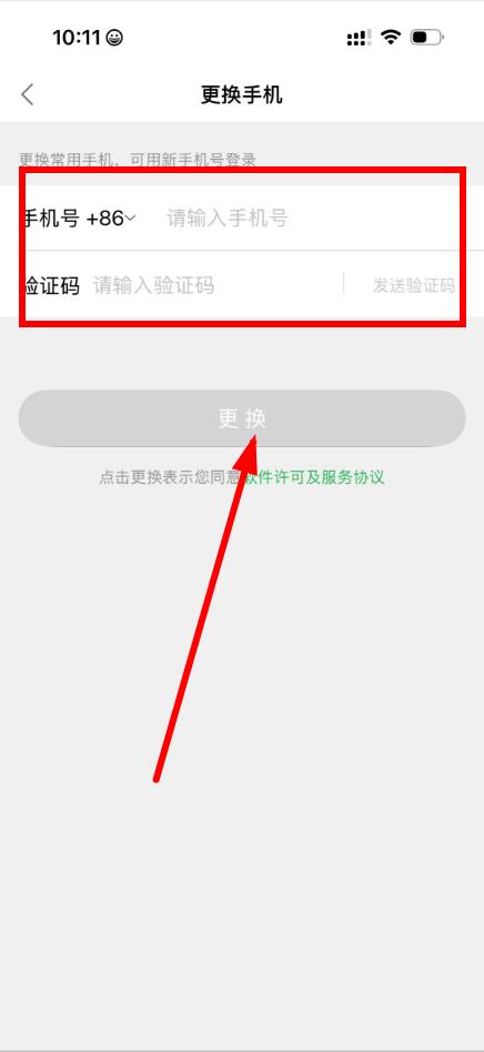 4、在更换手机界面,输入新的手机号和获取到的验证码,点击更换,完成手机号更换操作。
